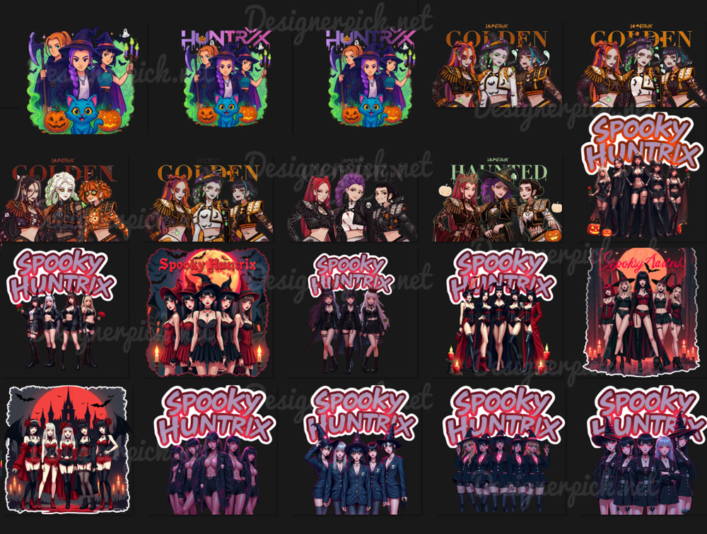K-pop Demon Hunter Halloween PNG Bundle, Halloween Huntrix  PNG, Demon Hunter PNG Bundle