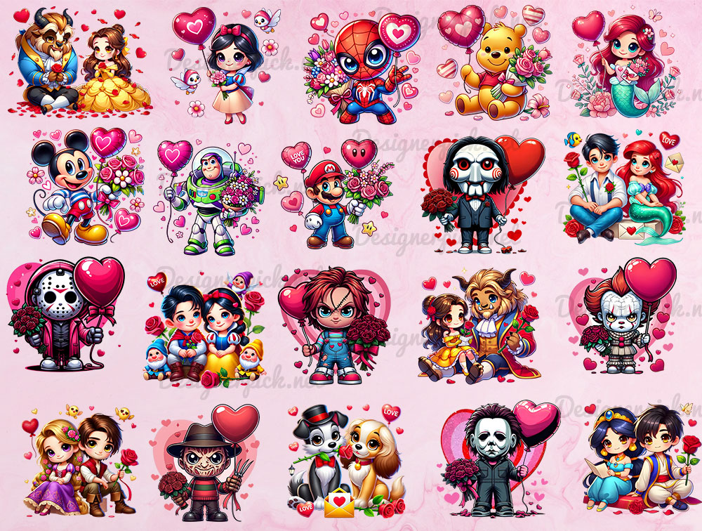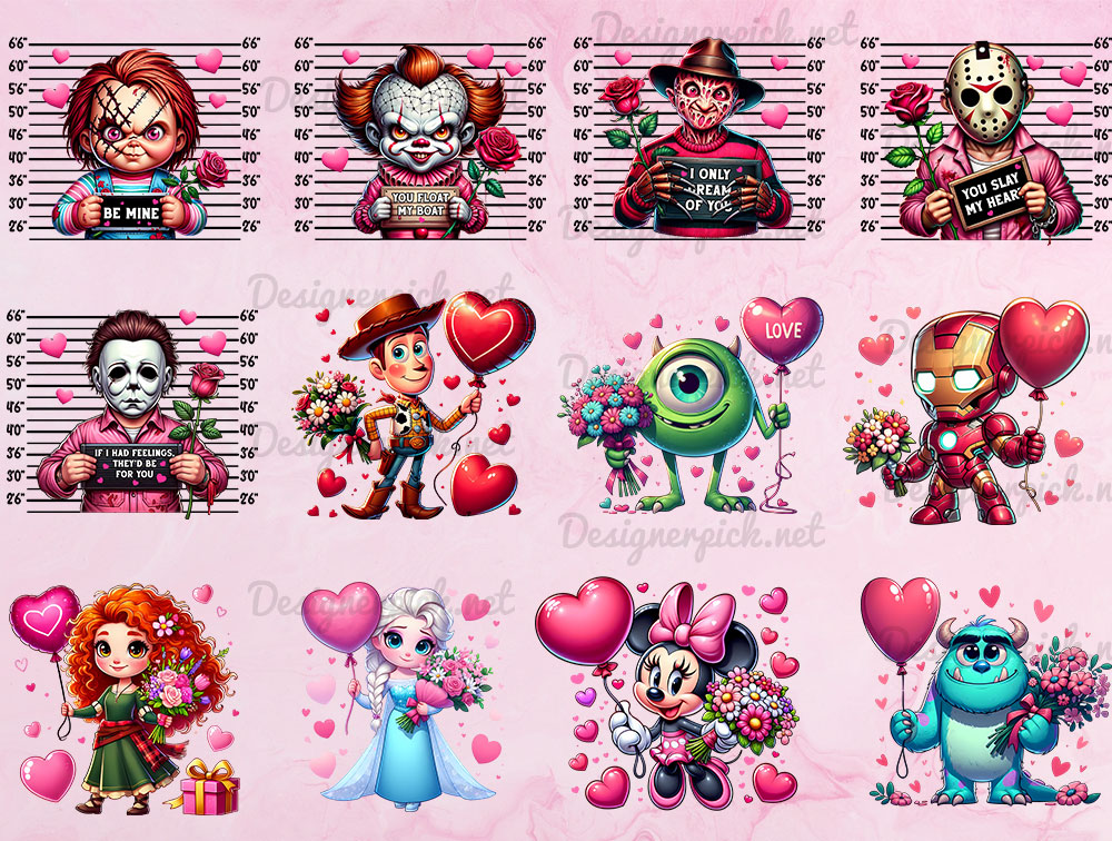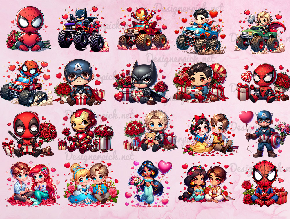 Valentine Superhero Clipart Bundle PNG, Cartoon Hero Love Graphics, Kids Valentine Printable, Superhero Valentine Png Bundle: Romantic Hero